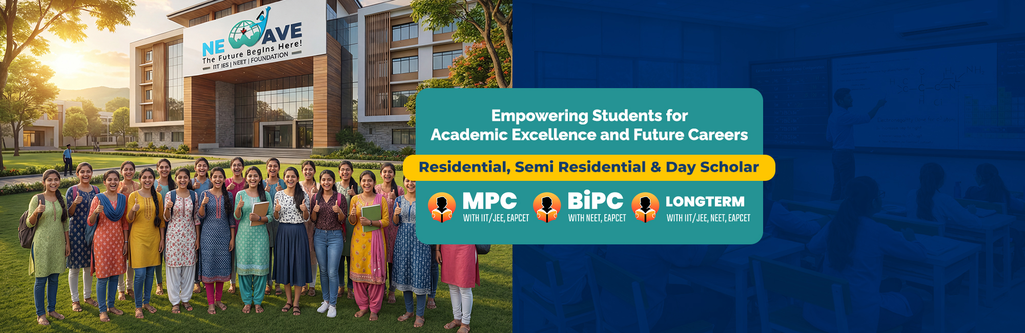 New Wave Junior College is dedicated to delivering concept-based education that builds strong academic foundations and nurtures future achievers. Our approach focuses on deep understanding, critical thinking, and disciplined preparation, enabling students to excel in Intermediate studies as well as competitive examinations.